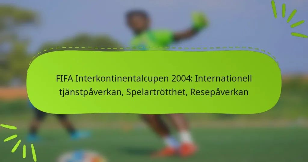 FIFA Intercontinental Cup 2004 belyste den betydande påverkan som internationell plikt har på spelarnas prestation, när idrottare navigerade genom utmaningarna med resor, trötthet och schemakonflikter. Dessa faktorer påverkade inte bara deras fysiska kapacitet utan även deras mentala skärpa, vilket i slutändan påverkade utgångarna av avgörande matcher. De långa avstånden och tidszonsförändringarna förvärrade ytterligare dessa problem, vilket gjorde återhämtning och beredskap till en kritisk fråga för de tävlande lagen. Key sections in the article: Toggle Vilken påverkan har internationell plikt på…