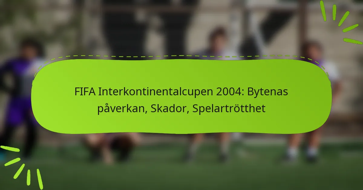 FIFA Intercontinental Cup 2004 visade den djupa påverkan av byten på matchdynamik, eftersom tränare strategiskt roterade spelare för att hantera trötthet och förbättra prestation. Skador spelade också en avgörande roll, vilket påverkade spelartillgänglighet och lagstrategier under hela turneringen. Dessutom bidrog det intensiva schemat och de fysiska kraven till spelarnas trötthet, vilket ytterligare påverkade individuella och lagresultat på planen.