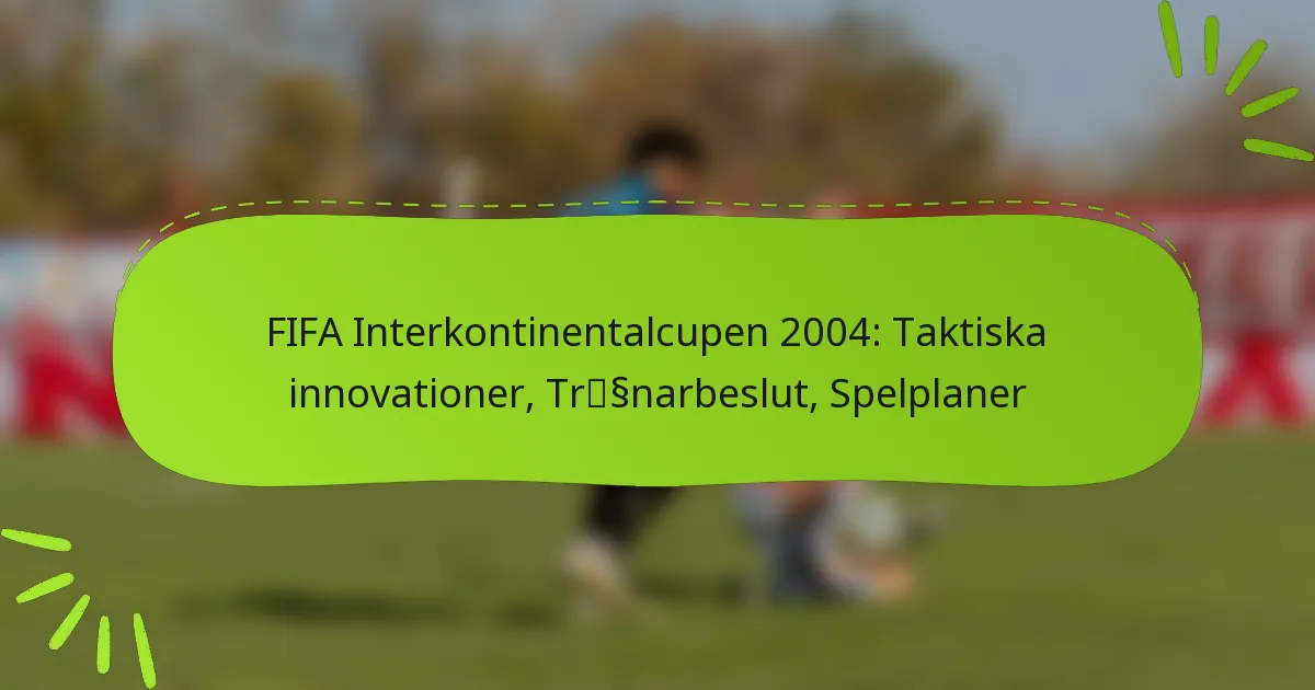 FIFA Interkontinentala Cup 2004 framhöll en rad taktiska innovationer som transformerade tillvägagångssättet i matcherna, där lagen använde varierande formationer och pressstrategier. Tränarens beslut spelade en avgörande roll i att forma lagdynamik och övergripande prestation, eftersom strategiska spelarval och byten direkt påverkade resultaten. Varje lags spelplan var noggrant utformad för att utnyttja deras styrkor samtidigt som de adresserade motståndarnas svagheter, vilket visade vikten av detaljerad analys och anpassningsförmåga i högtryckskonkurrens.